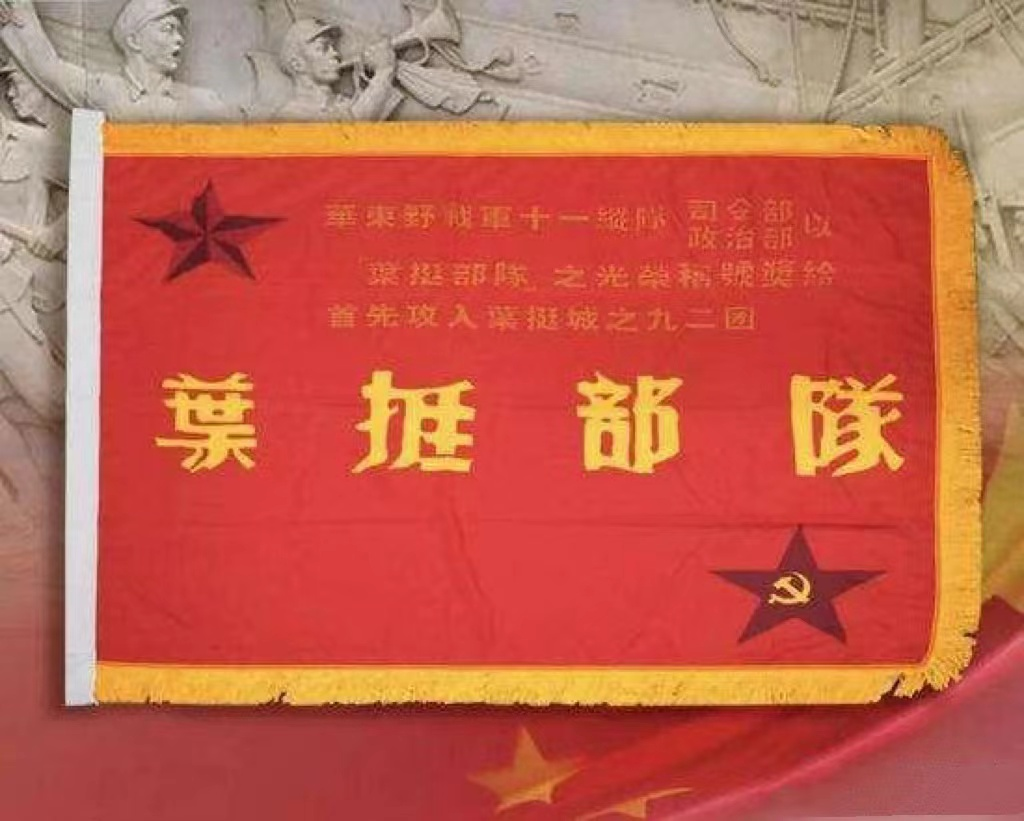 特别值得一提的是“叶挺部队”旗帜。