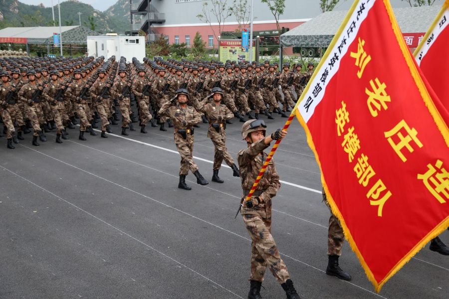 ▲图|“刘老庄连”英模部队方队正在进行分列式训练