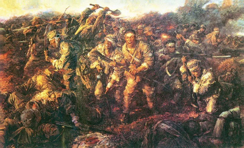 ▲图|《浴血刘老庄》(油画)张庆涛 秦文清